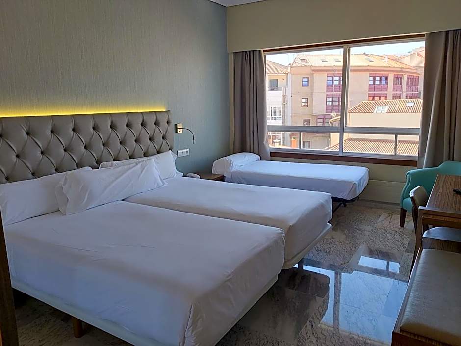 Doble con cama extra adulto is 323 square feet and includes either 2 single beds 80-130 width or a double bed 131-150 width plus desk, hairdryer, and safe and is Wheelchair-accessible.